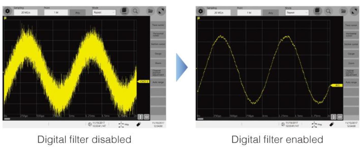 Digitaalisilla filttereillä voidaan poistaa harmonista kohinaa tai sillä voidaan rajoittaa mittauskaistaa, joka puolestaan myös kohinaa mittaussignaalista.